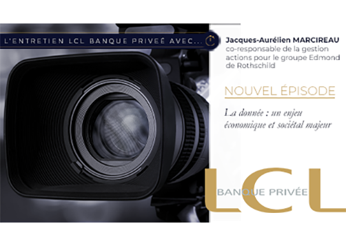 Régulièrement, Estelle Ménard, Directrice des investissements de LCL Banque Privée reçoit un(e) expert(e) pour décrypter une actualité, un thème d’investissement … et les impacts sur vos placements patrimoniaux. Dans ce nouvel épisode, rencontre avec Jacques-Aurelien Marcireau d’Edmond de Rothschild Asset Management pour échanger sur « la donnée ».