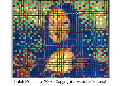 Cette institutionnalisation témoigne également d’un réel engouement pour cet art de la part des collectionneurs et amateurs d’art, toujours plus nombreux. En achetant une œuvre, ils combinent plaisir et diversification de leur patrimoine, et reconnaissent son potentiel de valorisation à long terme. Achetée en 2005 quelques milliers d’euros, l’œuvre Rubik Mona Lisa d’Invader (voir photo) a été adjugée 480 000 € par Artcurial en 2020. Mais avant de se lancer, Arnaud Oliveux conseille « de se documenter, de ne pas hésiter à pousser les portes des galeries spécialisées, d’assister à des ventes aux enchères. Mais aussi d’échanger avec des experts au fait des tendances et qui sauront vous donner les clés pour déchiffrer les œuvres ». Le choix se portera sur des artistes iconiques et à forte notoriété, dont certaines pièces atteignent plusieurs dizaines voire centaines de milliers d’euros. Et parfois plusieurs millions d’euros, l’exemple emblématique et exceptionnel étant La Fille au ballon de Banksy vendue 21,8 millions d’euros en 2021. Il peut aussi être pertinent de s’intéresser aux artistes émergents qui deviendront, peut-être, chef de fil. L’assurance de réaliser une plus-value en cas de revente.