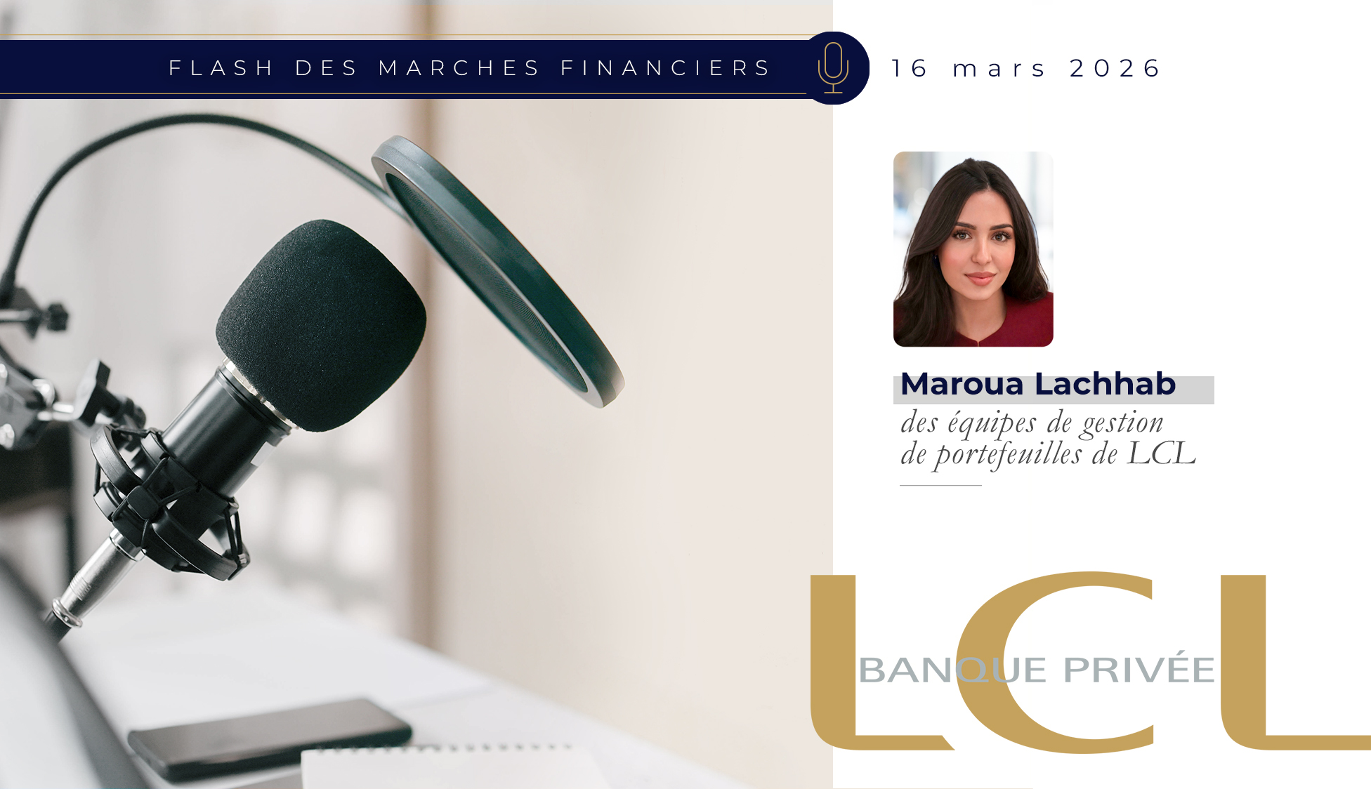 Les équipes de Gestion de portefeuilles de LCL présentent le Flash des Marchés Financiers du 16 mars 2026.