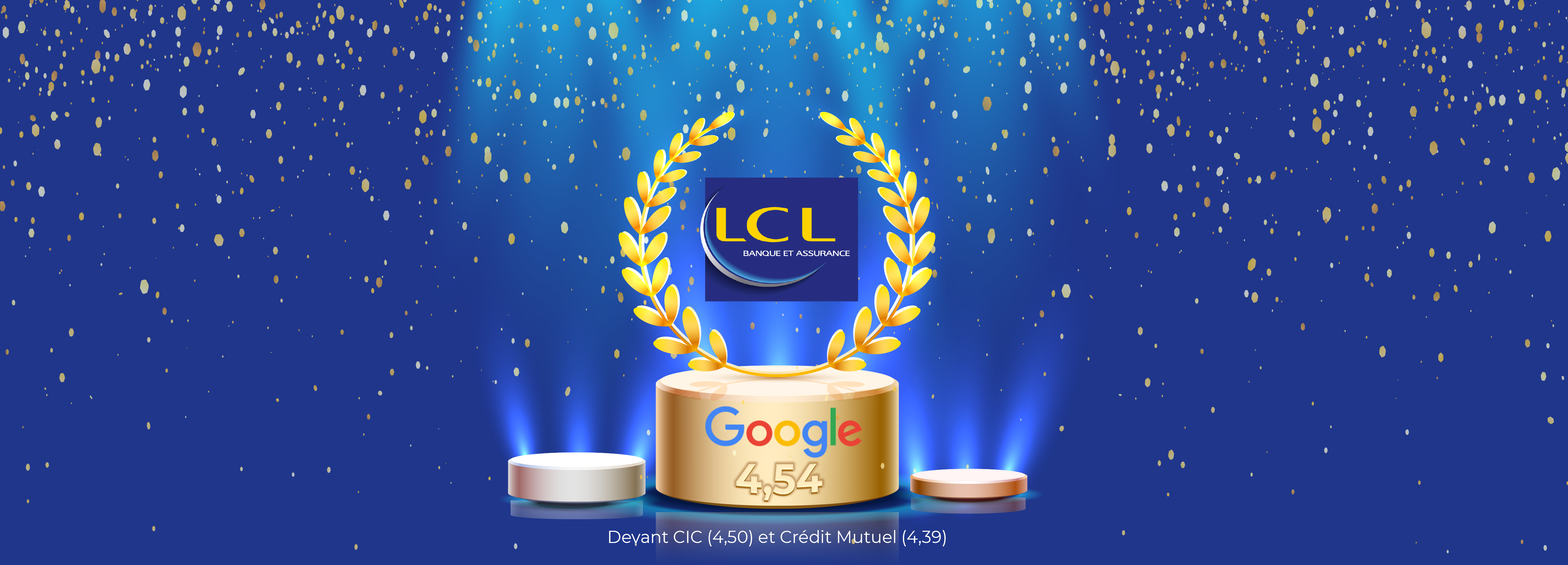 Pour LCL, ce sont plus de 24 000 avis analysés sur l'année 2022, qui lui permettent d'obtenir la note de 4,54 sur 5 (une progression de 18,42% par rapport à 2021) et d'ainsi se placer devant le CIC (4,50) et Crédit Mutuel (4,39).