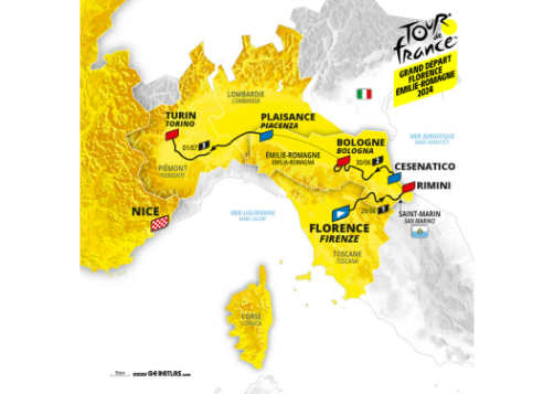 La première étape, le 29 juin, reliera Florence à Rimini (205km), les coureurs traverseront la Toscane et l'Emilie-Romagne, avec un passage par San Marin, 14ème pays à accueillir la plus grande course du monde. La deuxième, sur 200 kilomètres, partira de Cesenatico et se terminera sur un circuit final à Bologne en passant par Imola où Julian Alaphilippe a remporté son premier titre de champion du monde en 2020. Enfin, la troisième et dernière étape verra le peloton se rendre de Plaisance à Turin, sur 225 kilomètres.