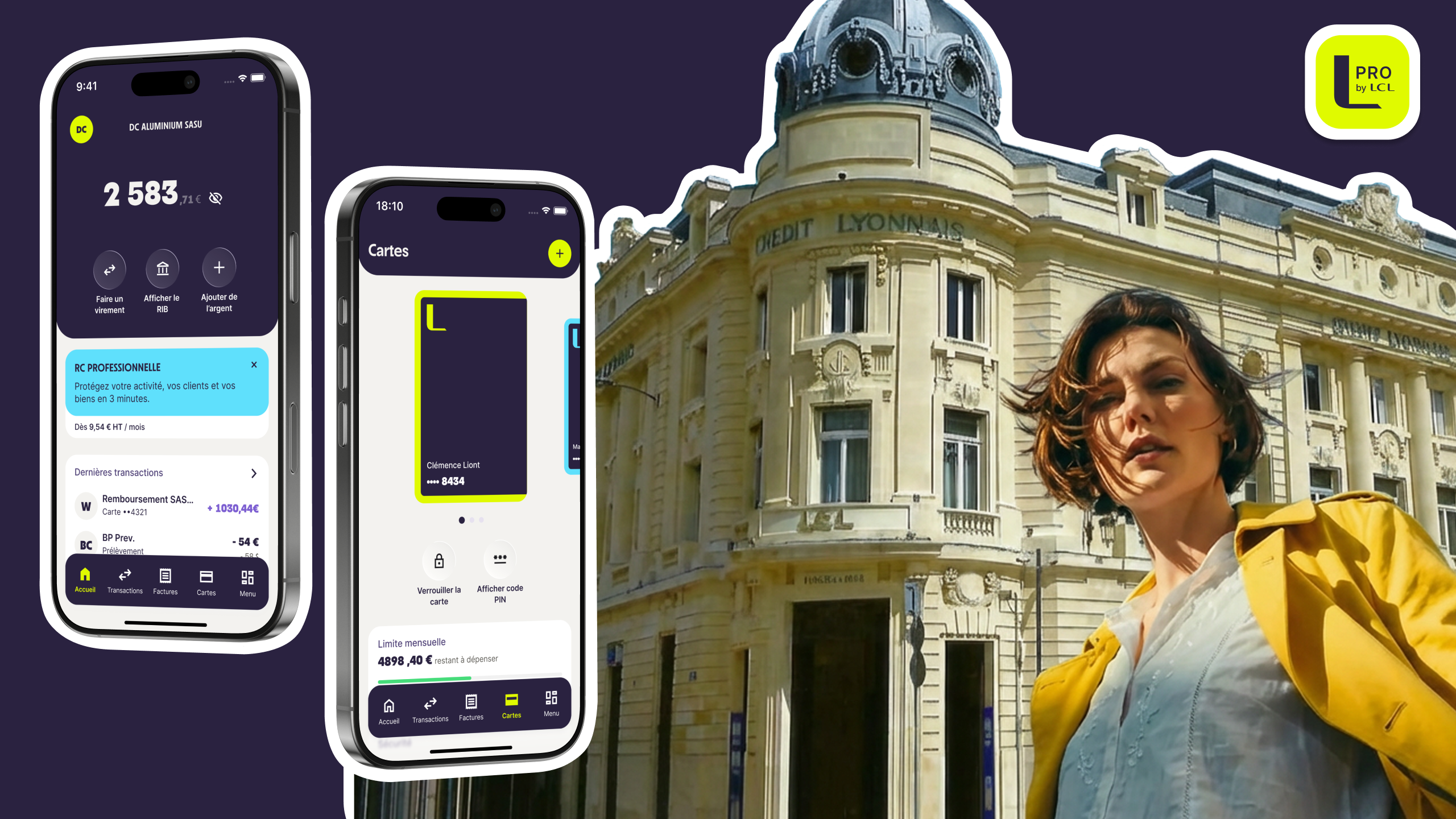 - « L by LCL Pro », qui garantit une autonomie totale, des tarifs compétitifs et un service client à distance. Une offre gratuite pour les clients particuliers LCL, ou bien à 9€/mois.