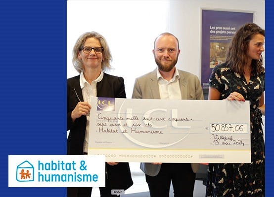 LCL en collaboration avec Amundi et Crédit Agricole Assurances, a pu verser cette année plus de 100 000 € à deux associations dédiées à l'inclusion et à l'accompagnement social :