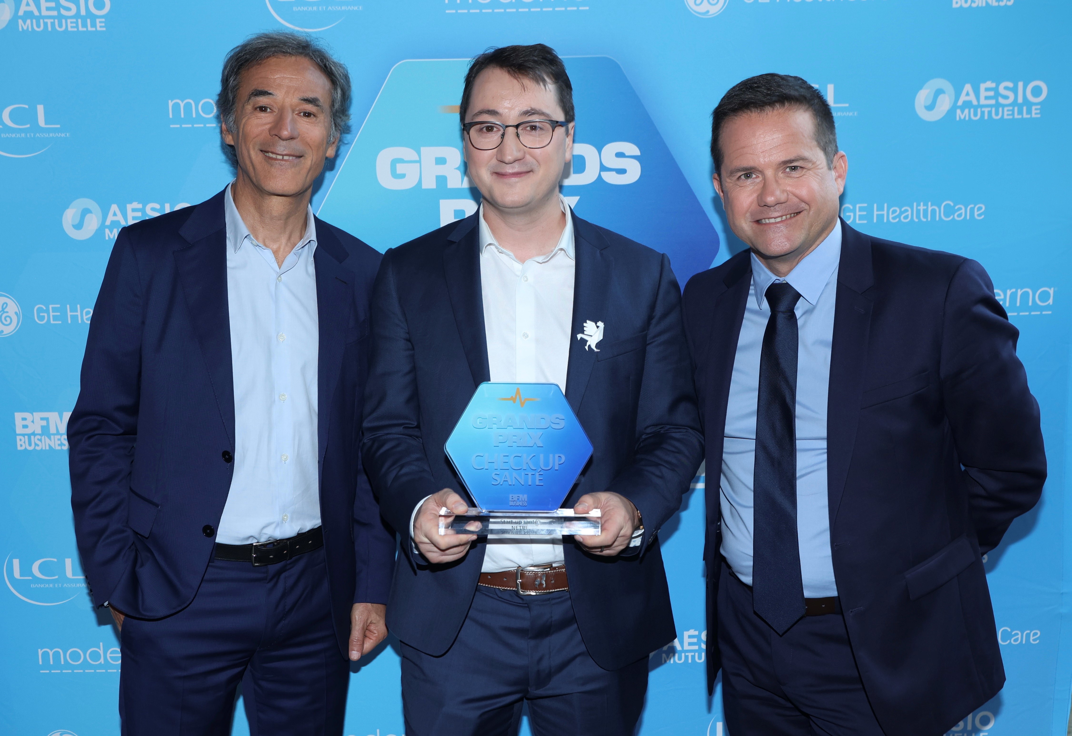 La startup lyonnaise Netri s’est vu remettre le prix Check Up santé qui récompense les personnalités qui ont marqué le secteur de la santé en 2022 sur BFM Business par Yann Lhuissier, membre du Comité Exécutif LCL et Directeur marchés & clients.